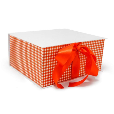 Χειροποίητο Kουτί-Βιβλίο, Λευκό-Κόκκινο Καρό με Σατέν Κορδέλα, 28x24x13cm