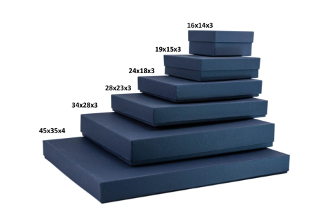 Κουτί παραλληλόγραμμο ρηχό, φτιαγμένο από σκληρό χαρτόνι σε σκούρο μπλε χρώμα, με εσωτερική επένδυση βελούδο
