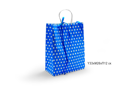 Τσάντα χάρτινη με στριφτή λαβή σε μπλε απόχρωση με λευκά πουά.