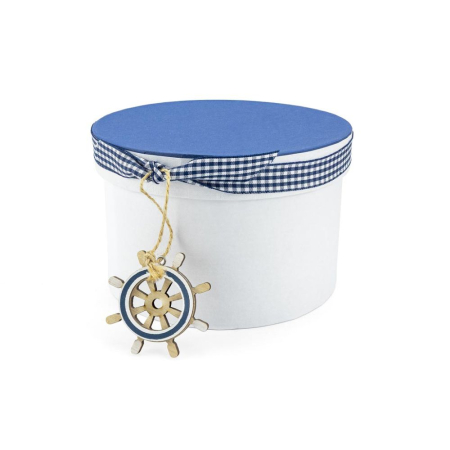 Χειροποίητο Χάρτινο Κουτί-Καπελιέρα, Λευκό με Σιέλ Καπάκι, 15*10cm