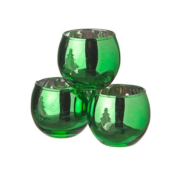 Κηροπήγιο S/3 γυάλινο πράσινο με δεντράκι