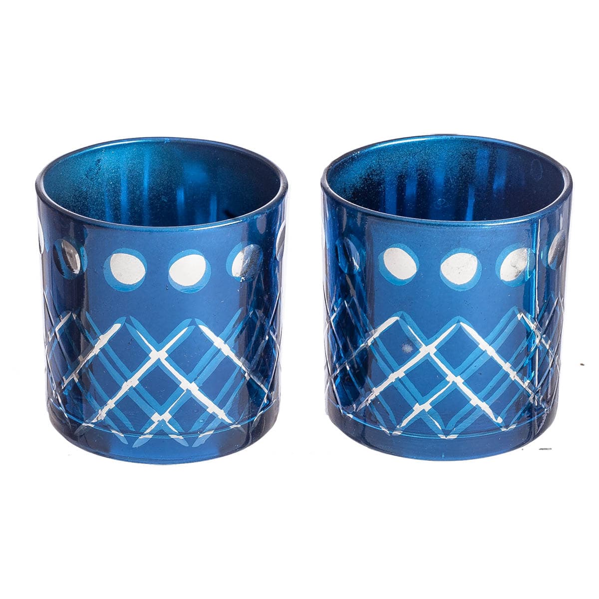Κηροπήγιο γυάλινο S/2 μπλε για ρεσώ