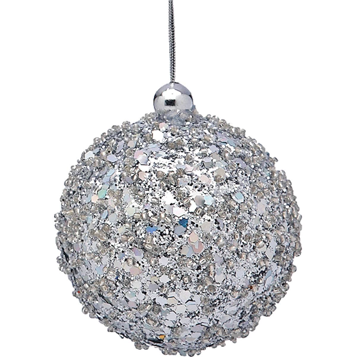 Μπάλα πλαστική χριστουγεννιάτικη, με ανάγλυφη διακόσμηση σε ασημί αποχρώσεις, Φ7εκ,