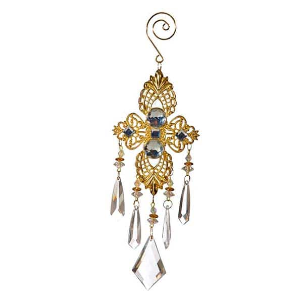 Κρεμαστό μεταλλικό στολίδι, σε χρυσό χρώμα, με περίτεχνο σχέδιο και κρυσταλλάκια