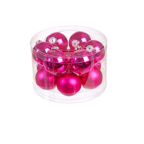 Γυάλινες χριστουγεννιάτικες μπάλες, σε φούξια χρώμα, ματ και γυαλιστερό, Συσκευασία των δώδεκα, Φ6εκ,