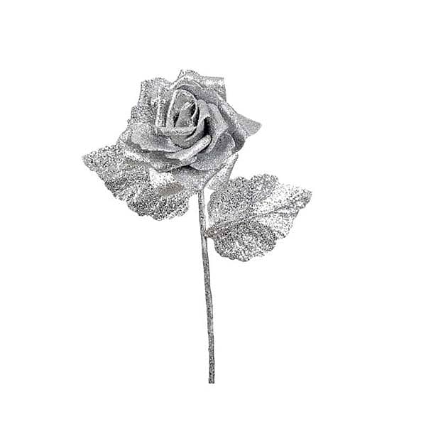 Κλαδί Τριαντάφυλλο, σε ασημί χρώμα, για να διακοσμήσετε ζεστά και γιορτινά τον χώρο σας