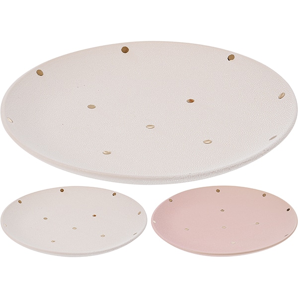 Πιάτο κεραμικό, με σχέδιο πουά, σε δύο χρώματα, αυτά του λευκού και του ροζ,