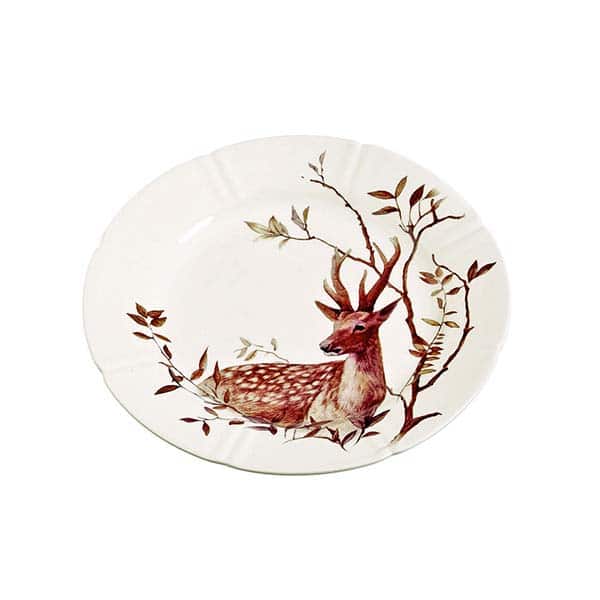 Πιατέλα κεραμική εκρού με ελάφι