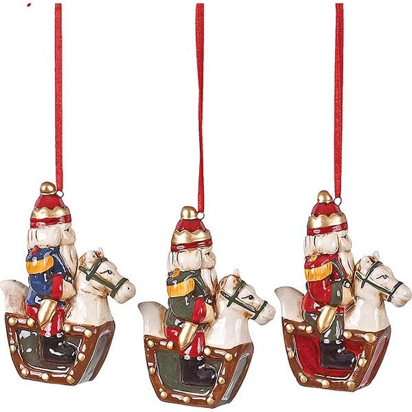 Κρεμαστό Χριστουγεννιάτικο στολίδι, στρατιώτης σε αλογάκι, κεραμικό, σε ΣΕΤ των 3