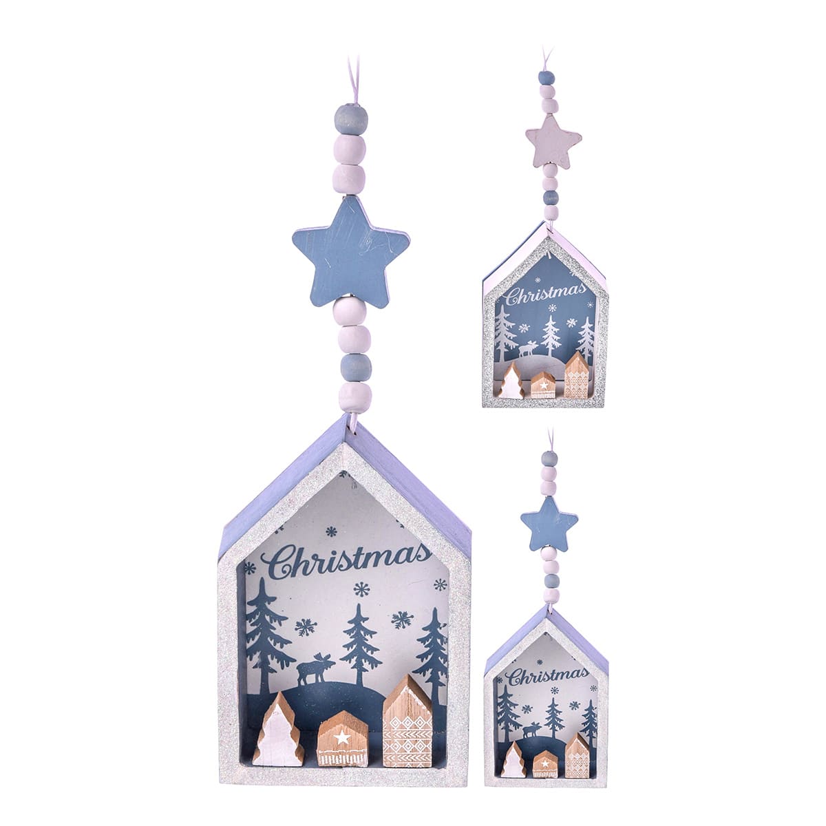 Ξύλινο κρεμαστό σπιτάκι, με χριστουγεννιάτικη παράσταση, σε δύο σχέδια για να στολίσουν το δέντρο σας,