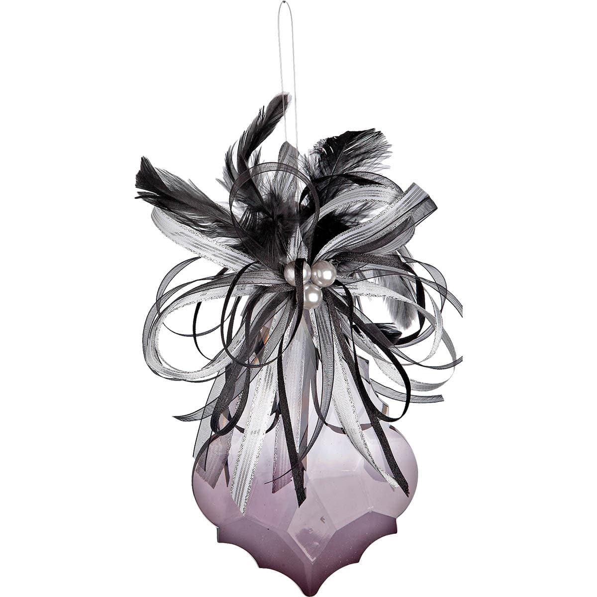 Ιδιαίτερο ακρυλικό στολίδι, μωβ χρώματος με μαύρα φτερά και κορδέλες που θα ομορφύνει το δέντρο σας!