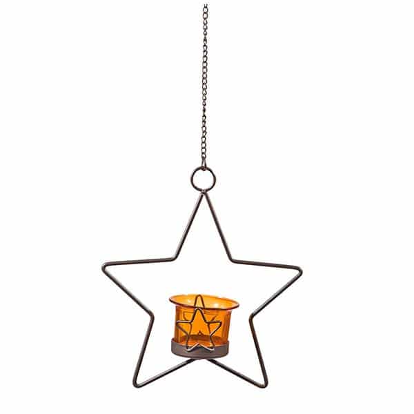 Γυάλινο κηροπήγιο, καφέ-πορτοκαλί, σε κρεμαστή βάση, με σχήμα αστέρι