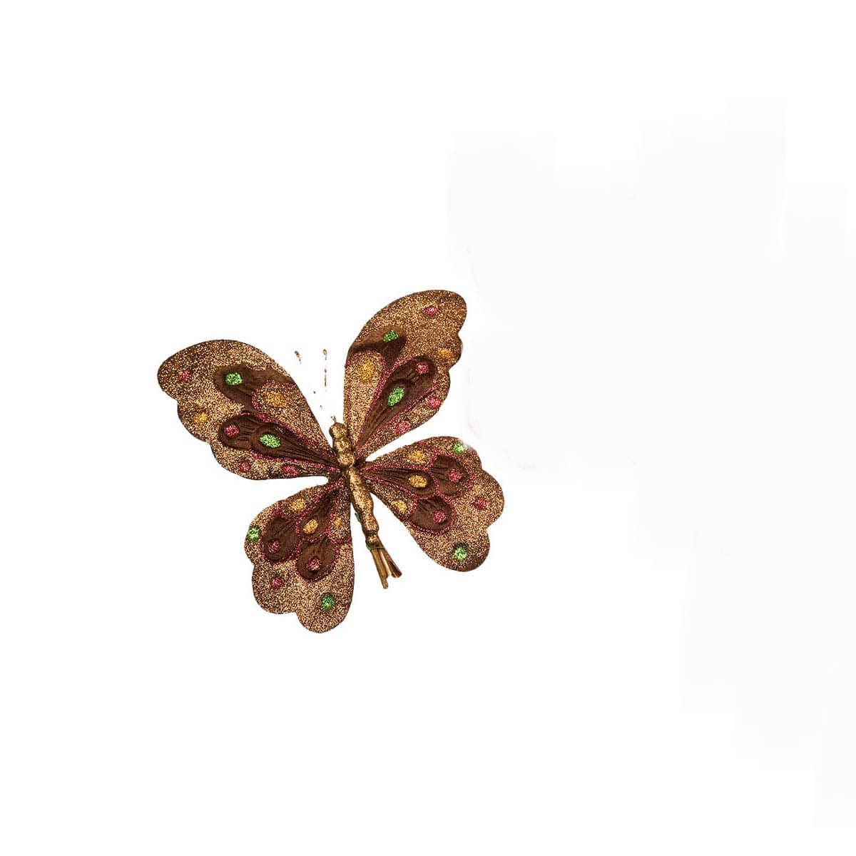 Όμορφη διακοσμητική πεταλούδα, χριστουγεννιάτικη, σε καφέ χρώμα με πολύχρωμες λεπτομέρειες,