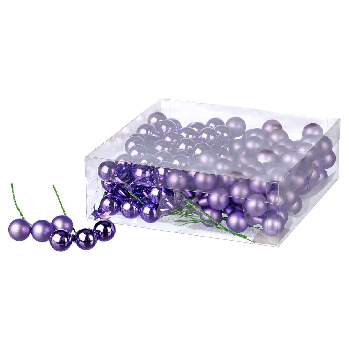 Πολύ μικρές γυάλινες χριστουγεννιάτικες μπάλες, διαμέτρου 2εκ,, μωβ λιλά χρώματος, σε γυαλιστερό και σε ματ, συσκευασία των δώδεκα, Φ2εκ,