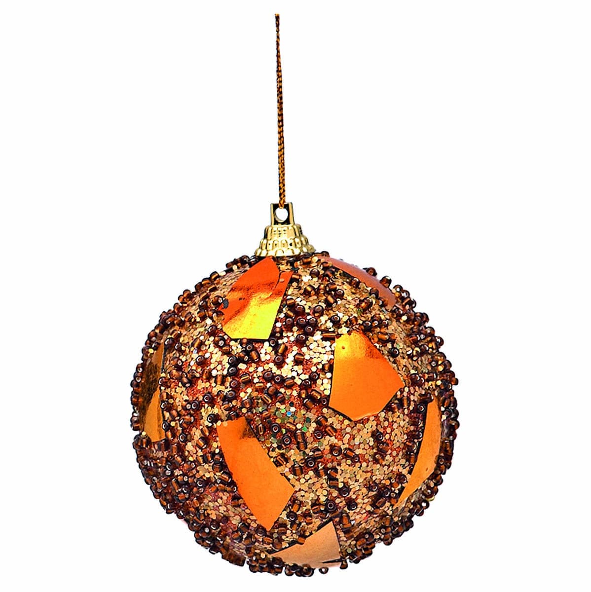 Μπάλες πλαστικές χριστουγεννιάτικες, με ανάγλυφο στολισμό σε χρώματα του πορτοκαλί, του χρυσού και του καφέ, Σε σετ των δώδεκα, Φ7εκ,
