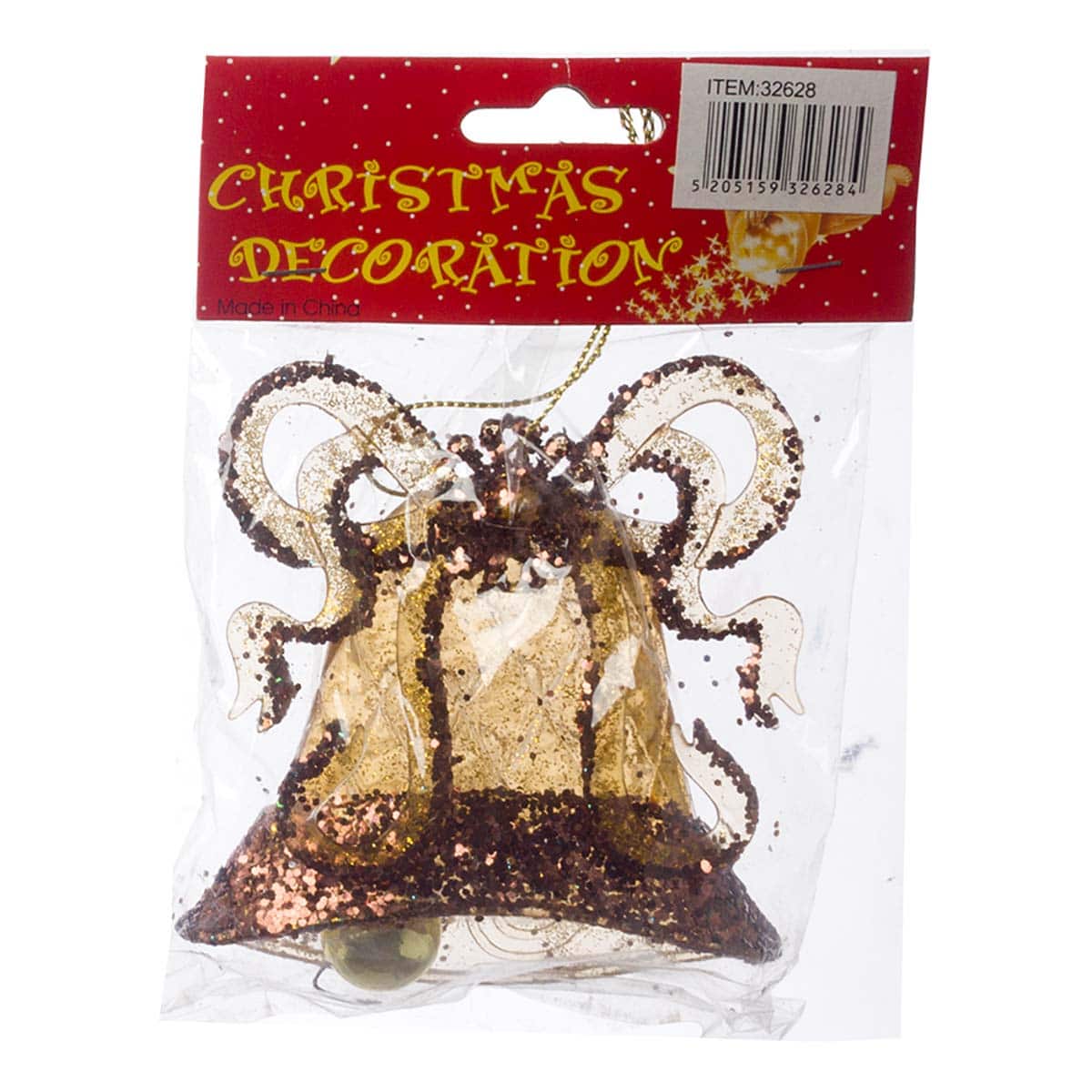 Πλαστικό στολίδι δέντρου καμπάνα με κορδέλα σε χρυσό και μπρονζέ χρώμα,