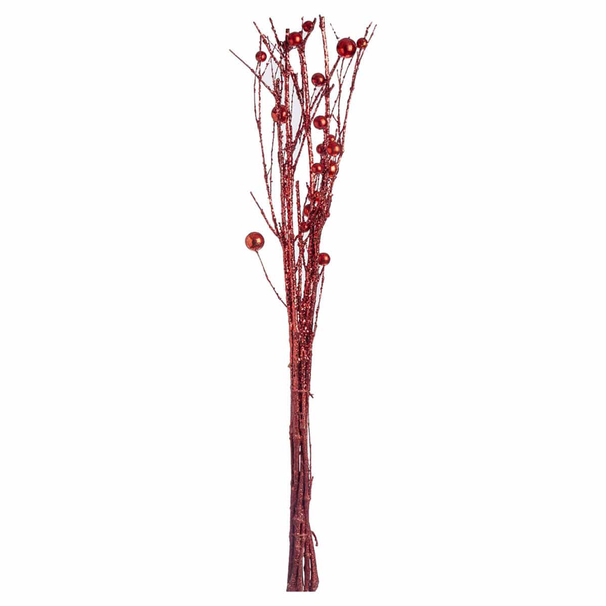 Χριστουγεννιάτικο μάτσο με κλαδιά, διακοσμημένο με κόκκινες μπάλες