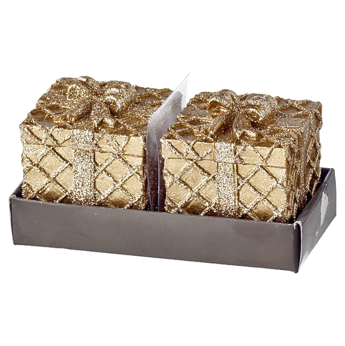 Χριστουγεννιάτικο κερί, σε σχέδιο κουτί δώρου, σε χρυσό χρώμα, σε ΣΕΤ των 2
