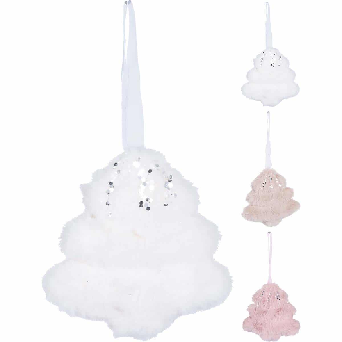 Γούνινο διακοσμητικό για το δεντράκι σας σε τρία χρώματα, λευκό, σομόν και ροζ, Ύψος:12 εκ,