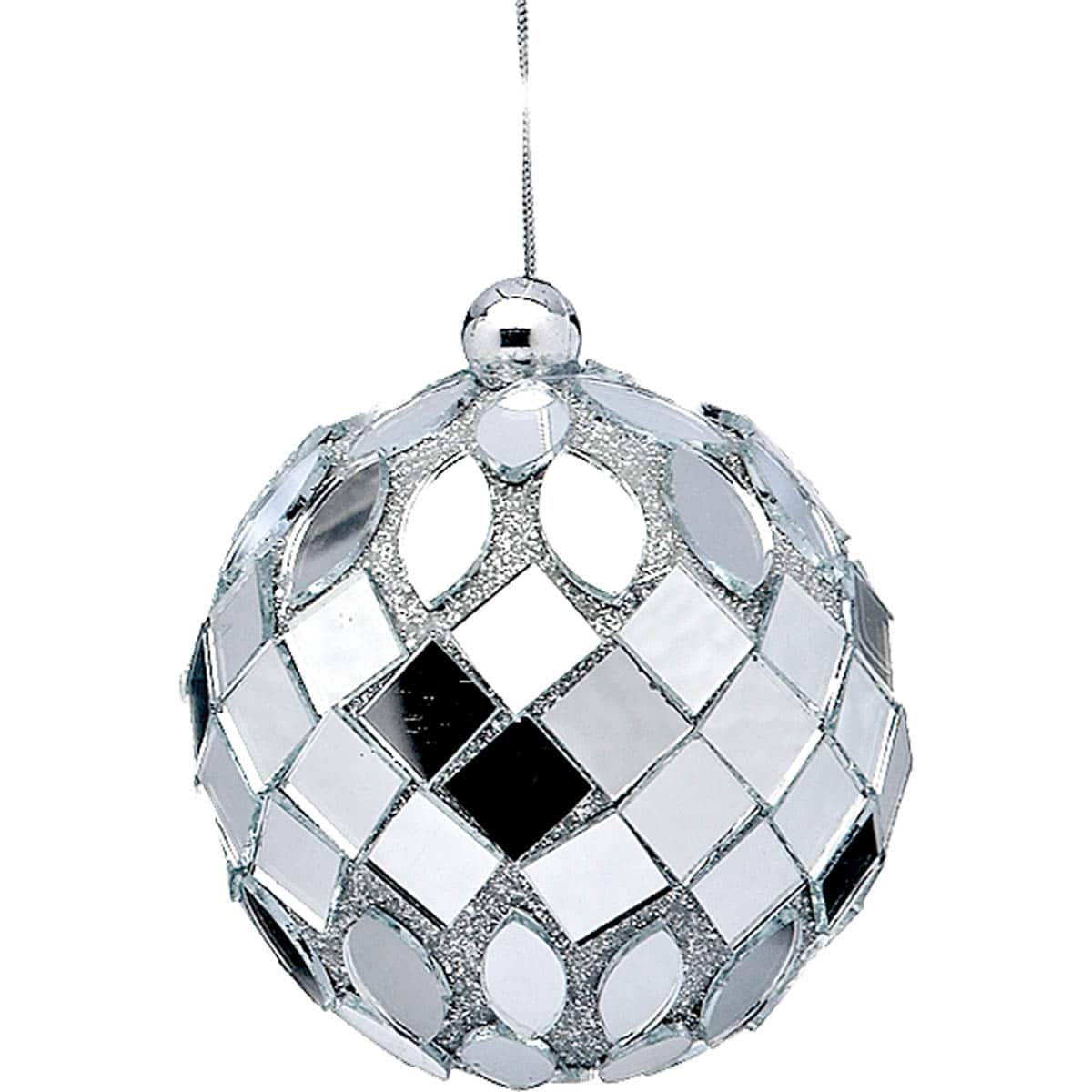 Μπάλα πλαστική χριστουγεννιάτικη, με διακόσμηση καθρεφτάκια σε ασημί γυαλιστερό, Φ7εκ,