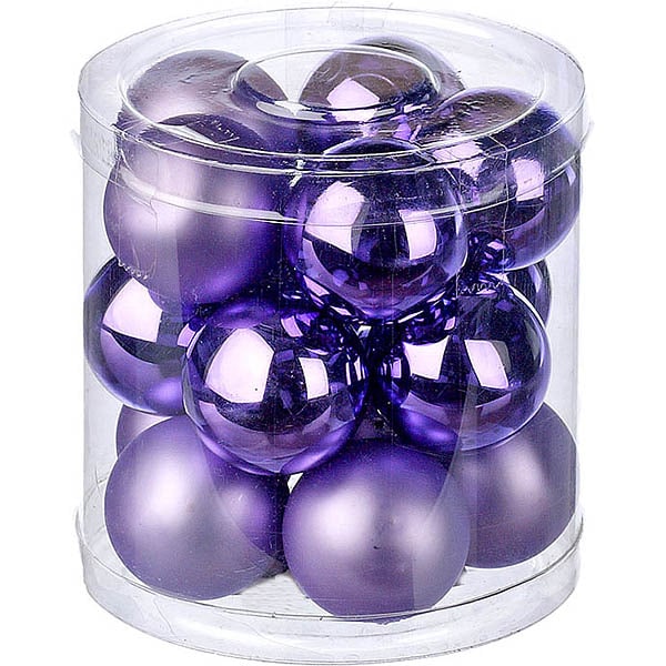 Πολύ μικρές γυάλινες χριστουγεννιάτικες μπάλες, μωβ λιλά χρώματος, σε γυαλιστερό και σε ματ, συσκευασία των δεκαπέντε, Φ3εκ,