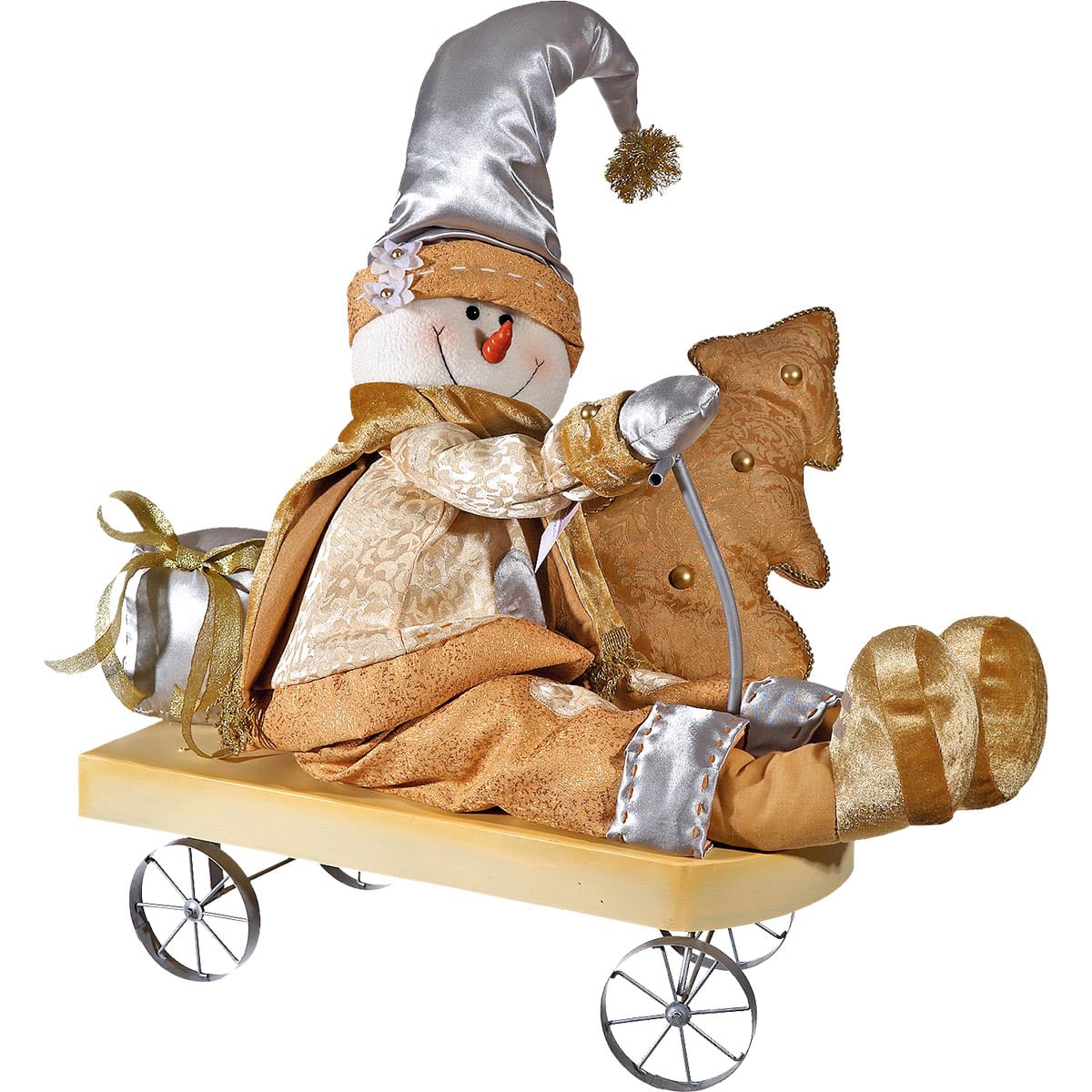 Ένας χαριτωμένος υφασμάτινος χιονάνθρωπος, πάνω στο ξύλινο έλκηθρό του, έτοιμος να βιώσει τις χριστουγεννιάτικες περιπέτειες του, μαζί σας!