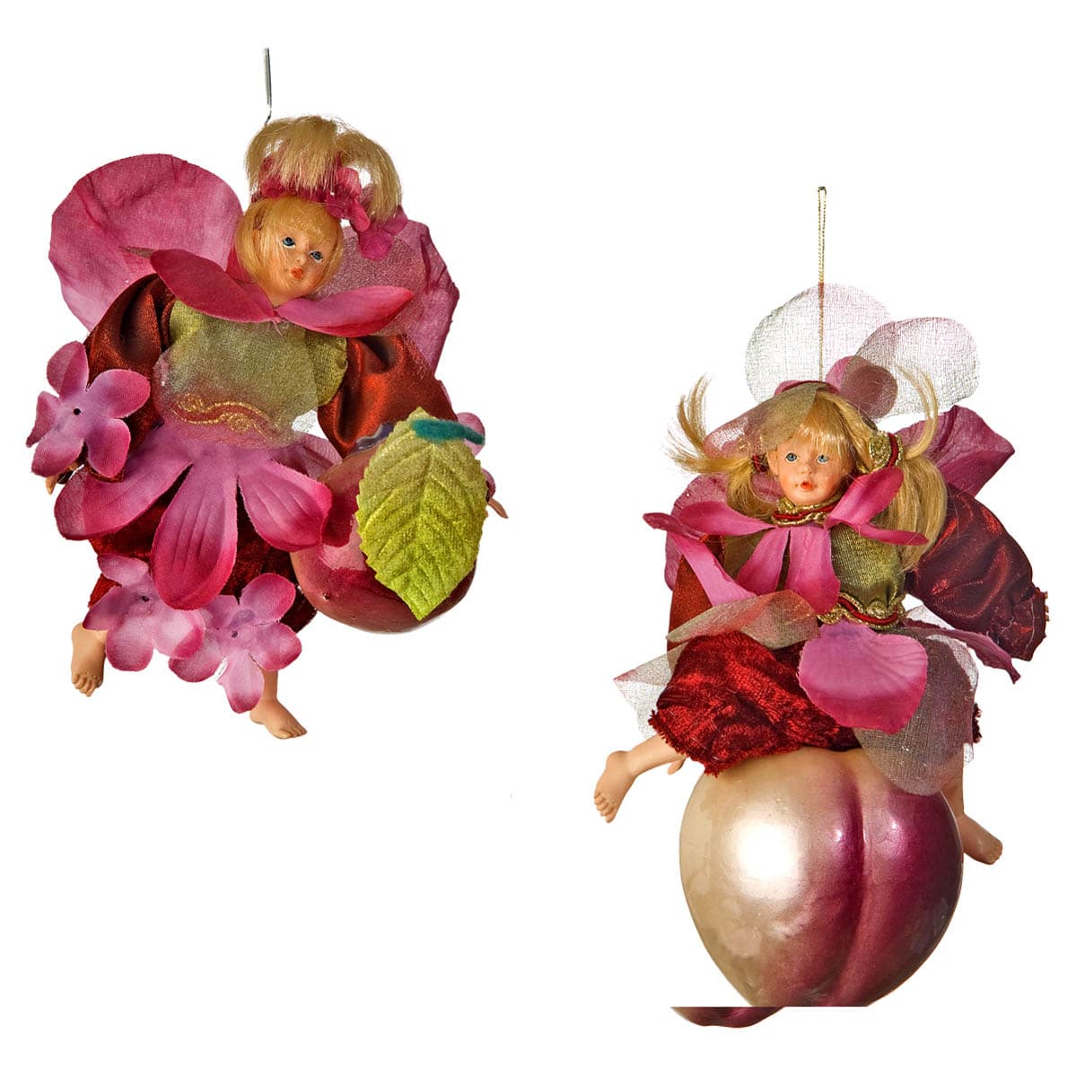 Χριστουγεννιάτικο κρεμαστό στολίδι νεραϊδάκι, με φρούτα, κεραμικό, σε ΣΕΤ των 3