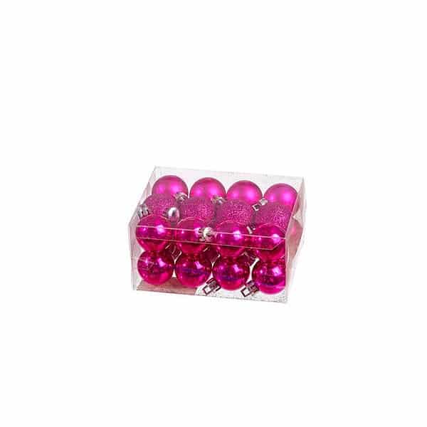 Μπάλες πλαστικές χριστουγεννιάτικες σε φούξια χρώμα ματ, γκλίτερ και γυαλιστερό, Σετ των εικοσιτεσσάρων, Φ3εκ,