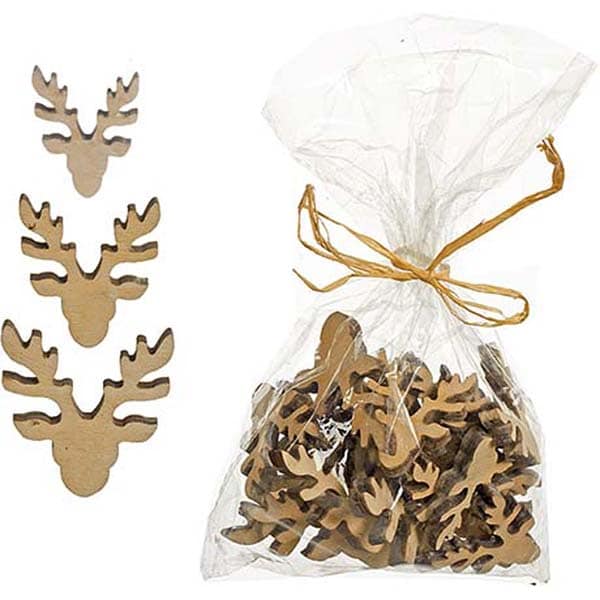 Ελαφάκι ξύλινο, διακοσμητικό, σε διάφορα μεγέθη, 4cm - 6cm σε συσκευασία των είκοσι τεμαχίων,