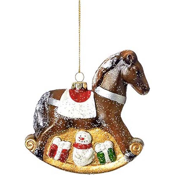 Πλαστικό στολίδι δέντρου κουνιστό αλογάκι με χιονάνθρωπο και δωράκια,
