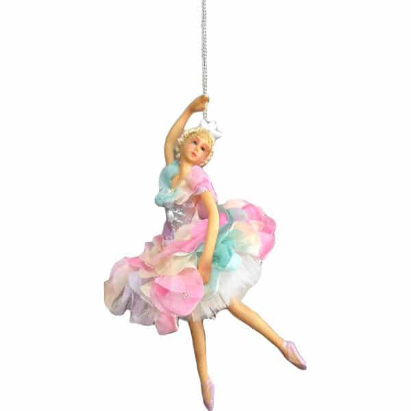 Διακοσμητική μπαλαρίνα κρεμαστή, από πολυρητίνη με πολύχρωμο φόρεμα, Ύψος: 17εκ,
