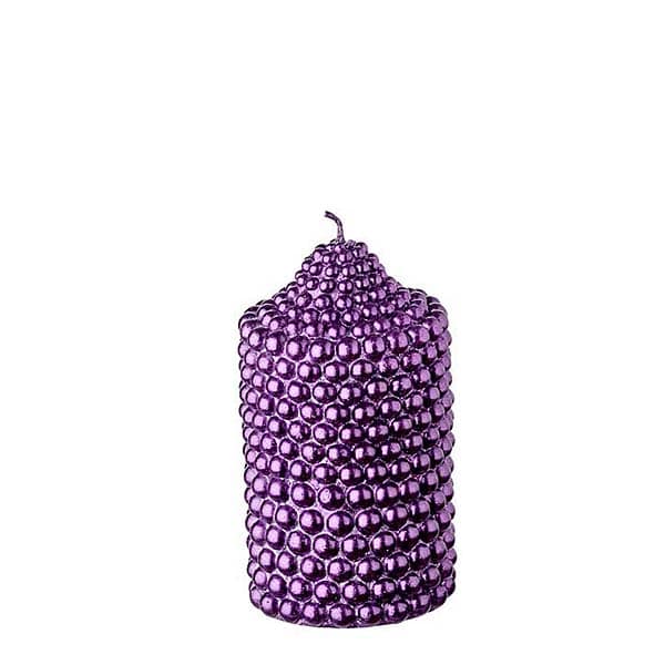 Χριστουγεννιάτικο κερί κύλινδρος, σε μωβ χρώμα με πέρλες