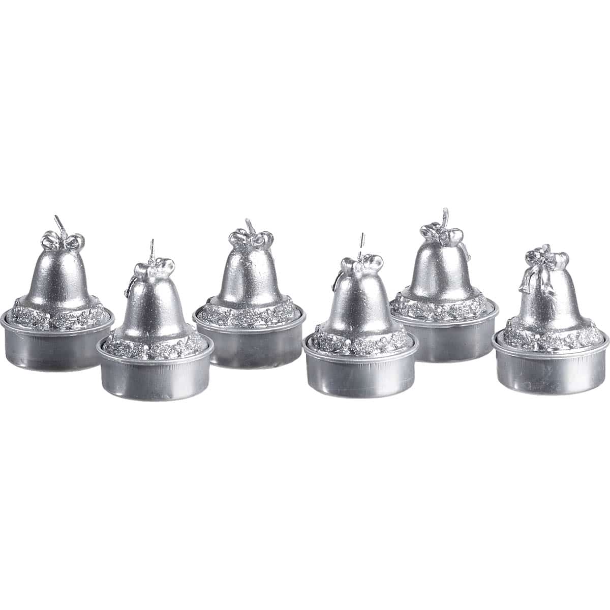 Χριστουγεννιάτικες καμπανούλες κεράκια, σε ασημί χρώμα, σε ΣΕΤ των 6