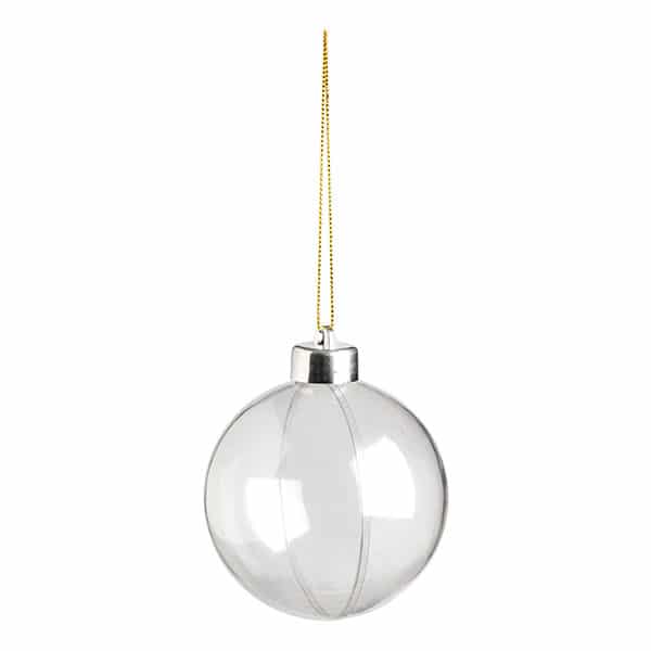 Μπάλα χριστουγεννιάτικη πλαστική, διάφανη,που ανοίγει για να τις βάλετε το διακοσμητικό της αρεσκείας σας, Φ8εκ,