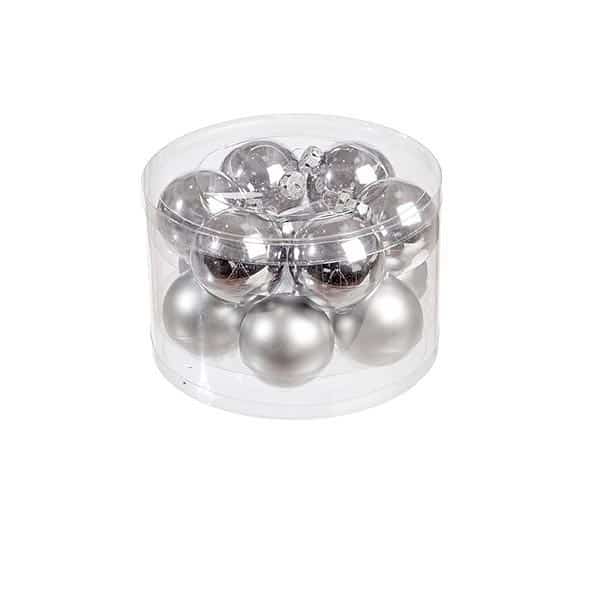Γυάλινες χριστουγεννιάτικες μπάλες, σε ασημί χρώμα, ματ και γυαλιστερό, Συσκευασία των δώδεκα, Φ6εκ,