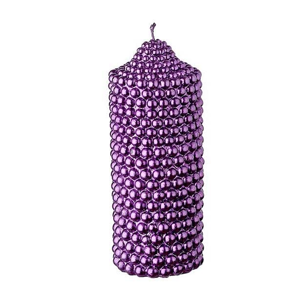 Χριστουγεννιάτικο κερί κύλινδρος, σε μωβ χρώμα με πέρλες