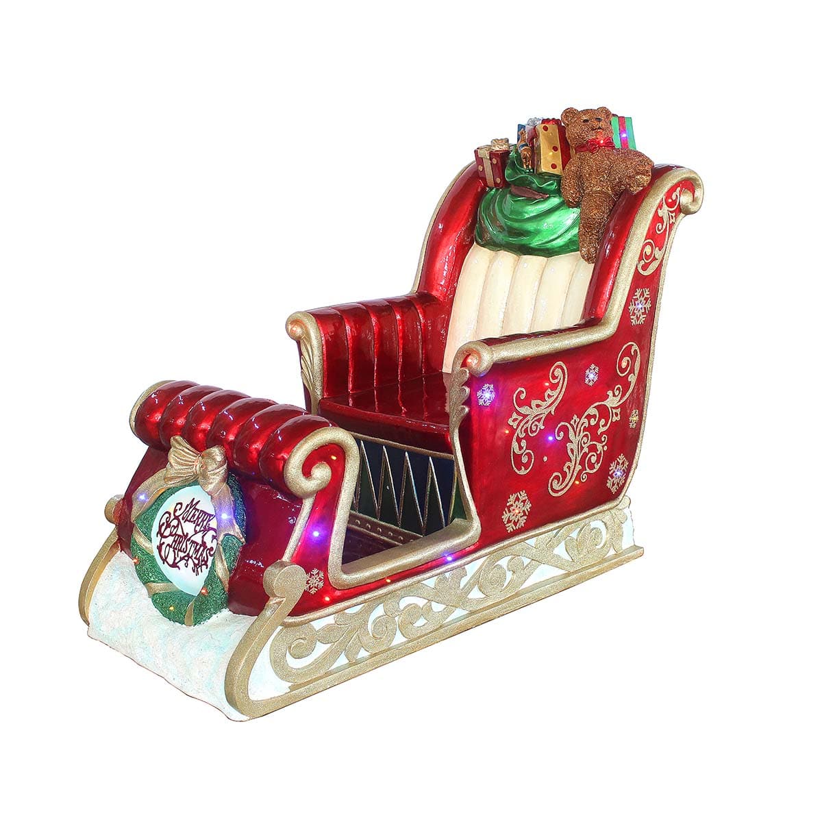 Εντυπωσιακό Χριστουγεννιάτικο διακοσμητικό έλκηθρο, εξωτερικού χώρου, από ρητίνη, με φως και μουσική