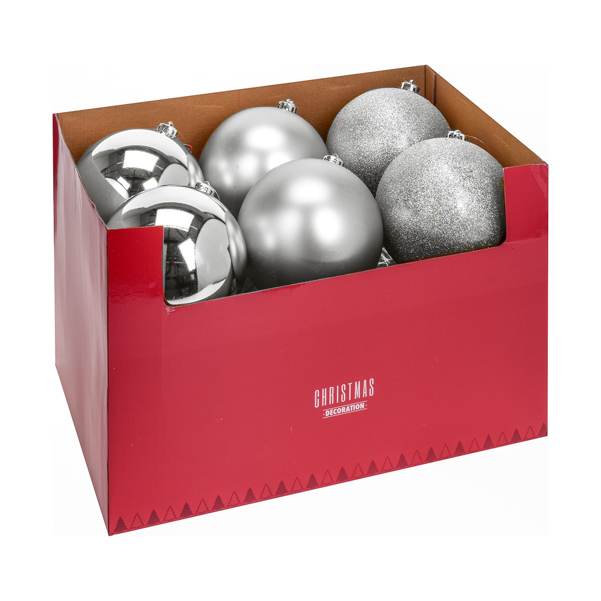 Μπάλα χριστουγεννιάτικη πλαστική, ασημί χρώματος, σε ματ, γυαλιστερό και γκλίτερ, Φ15εκ,