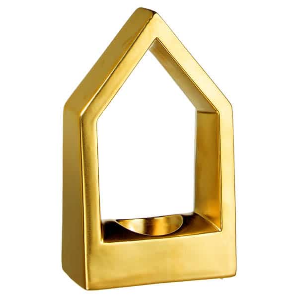 Κεραμικό κηροπήγιο σπίτι, με θήκη για ρεσώ, σε χρυσό χρώμα