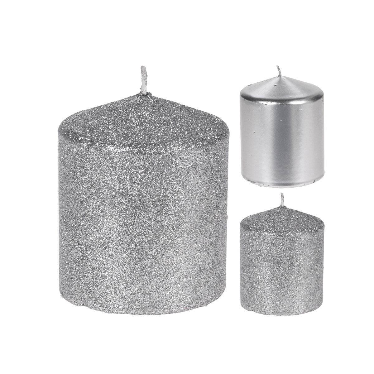 Χριστουγεννιάτικο κερί κύλινδρος, σε ασημί χρώμα και σε 2 σχέδια