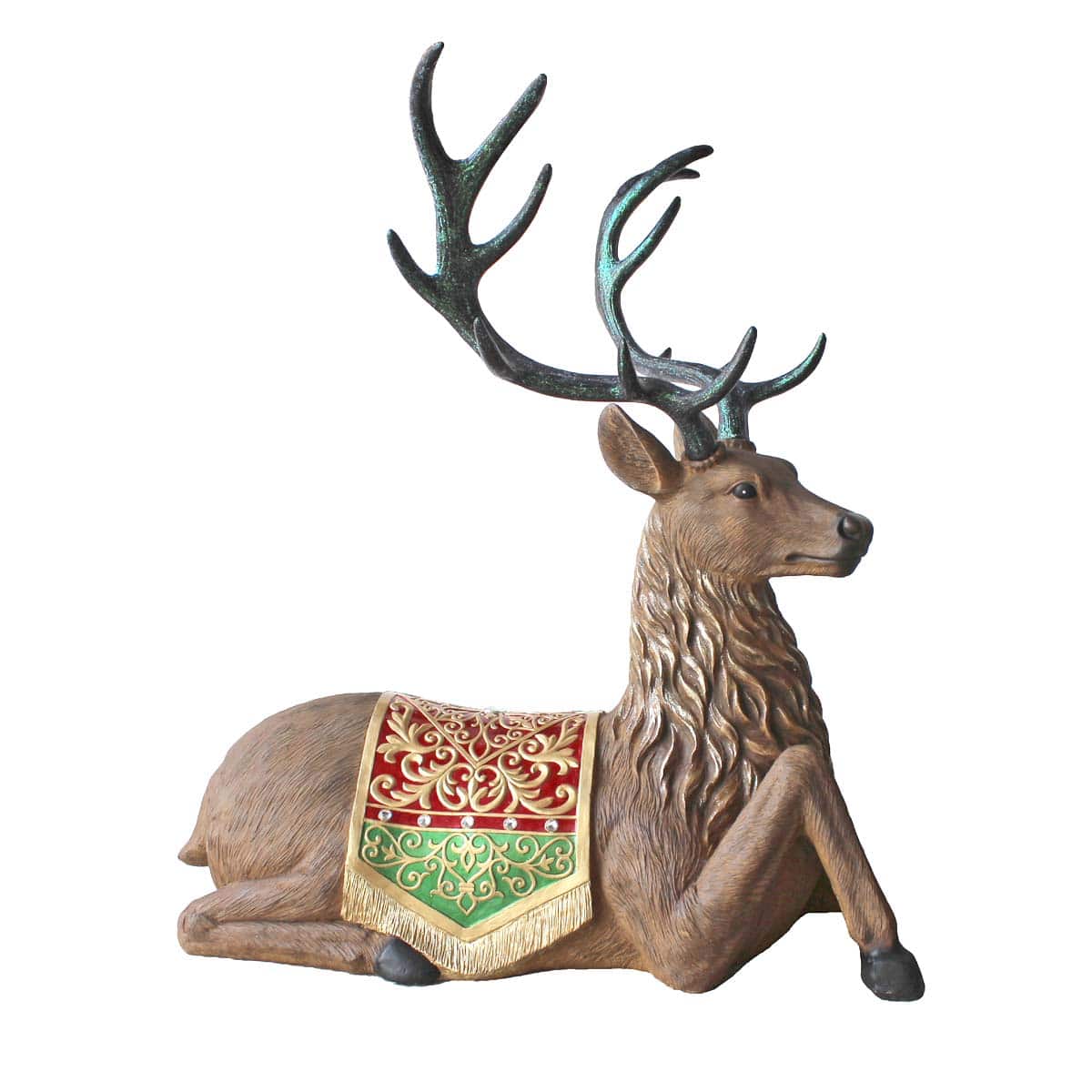 Εντυπωσιακός διακοσμητικός τάρανδος,από ρητίνη, καθιστός, εξωτερικού χώρου, που φωτίζεται