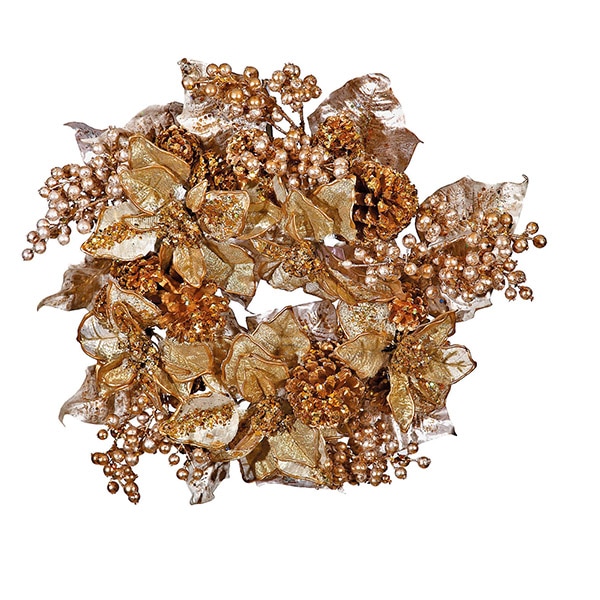 Στεφάνι με σύνθεση από μούρα και αλεξανδρινό, σε μεταλιζέ τόνους του χρυσού και του ασημί,