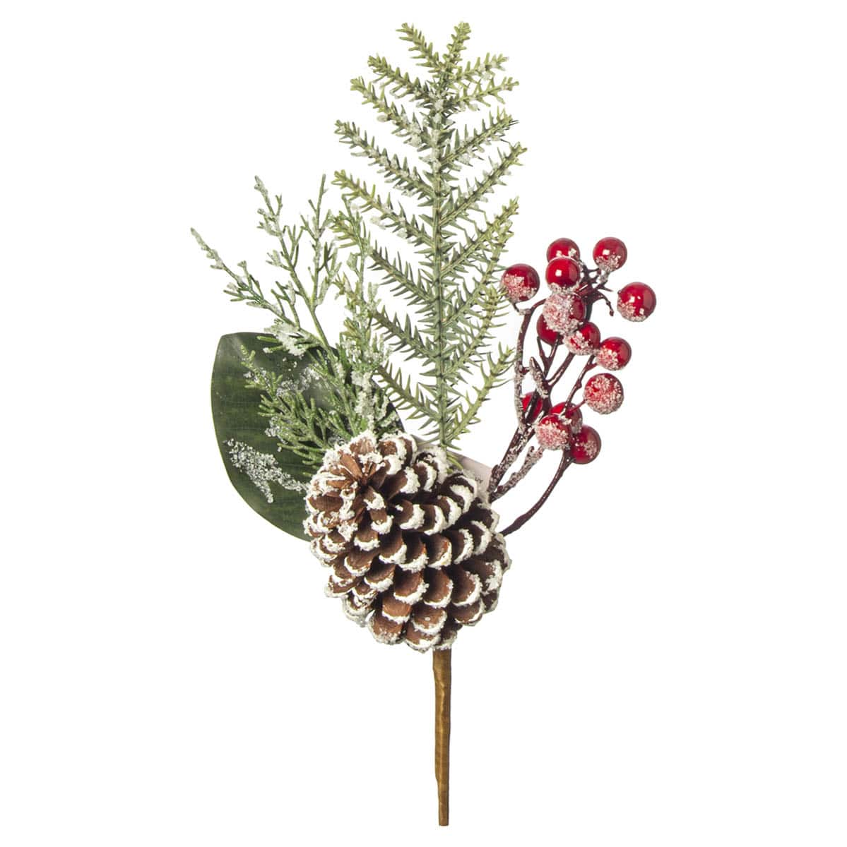 Χριστουγεννιάτικο χιονισμένο κλαδί πεύκο, με κουκουνάρι και κόκκινα μπιλάκια , για διακοσμήσετε ζεστά και γιορτινά τον χώρο σας