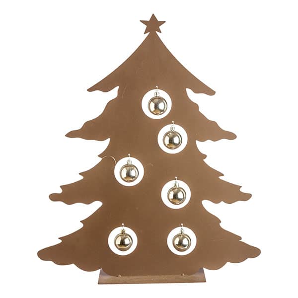 Χριστουγεννιάτικο μεταλλικό δεντρο, σε καφέ χρώμα και με ασημένιες μπάλες