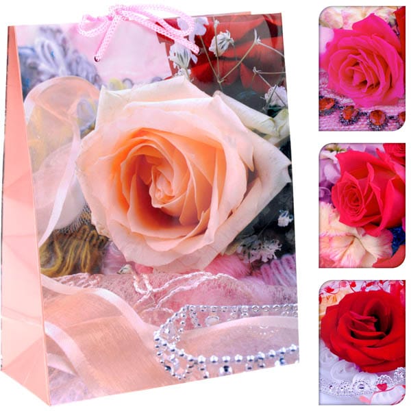 Χάρτινη σακούλα, σε μεσαίο μέγεθος, σε 4 υπέροχα σχέδια με τριαντάφυλλα