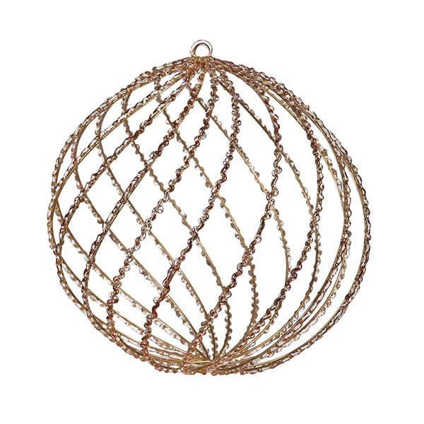 Μπάλα χριστουγεννιάτικη, πλαστική, χρυσαφί, σε πλεκτό σχέδιο,