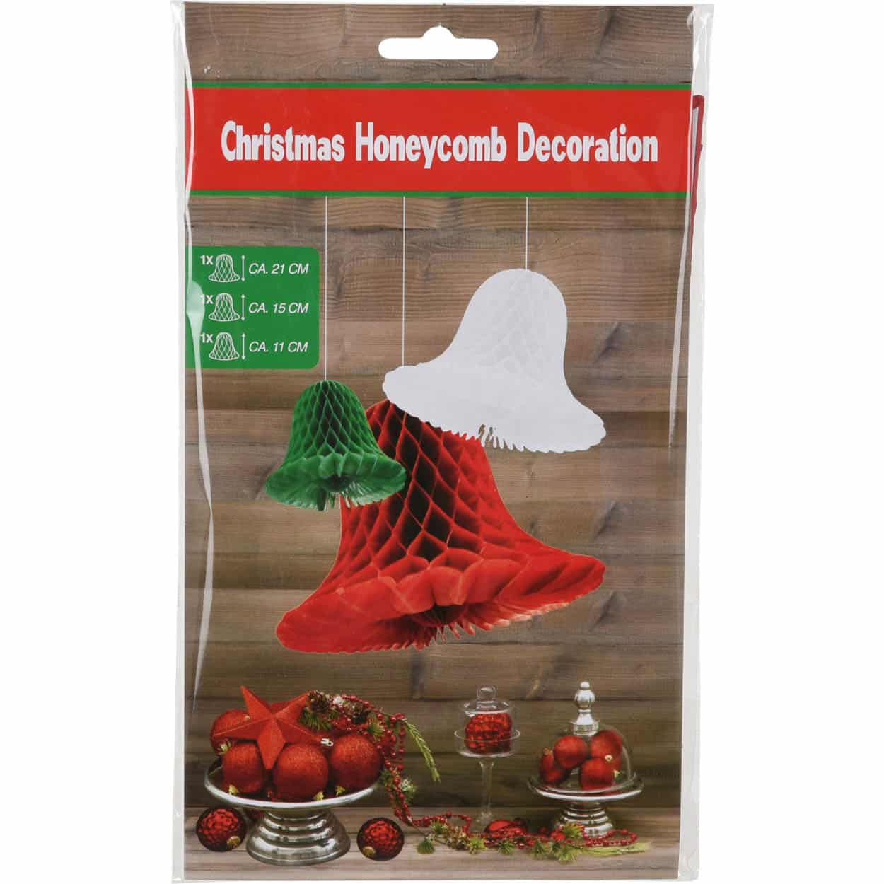 Κρεμαστά διακοσμητικά από χαρτί σε σχήμα καμπάνας, για το δέντρο σας σε τρία σχέδια και τρία χρώματα, πράσινο, λευκό και κόκκινο,