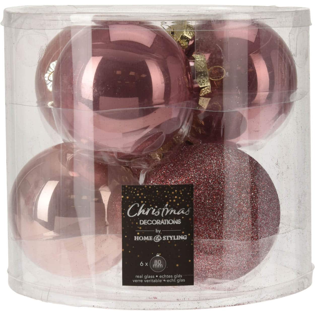 Γυάλινη χριστουγεννιάτικη μπάλα,ροζ χρώματος, σε ματ και γυαλιστερό, Συσκευασία των έξι, Φ8εκ,