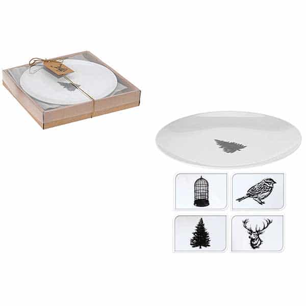 Κεραμικό πιάτο, λευκό, σε 2 υπέροχα σχέδια μαύρου χρώματος,