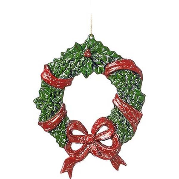 Πλαστικό στολίδι δέντρου κρεμαστό, στεφάνι με γκι και κόκκινη κορδέλα,